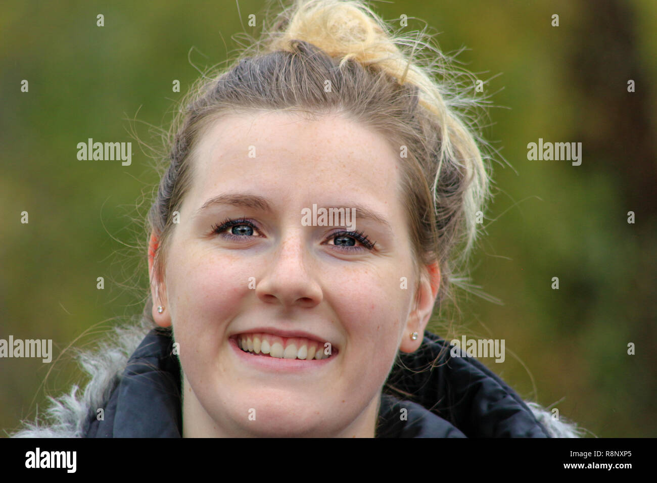Naturliche Susse Blonde Frau Lachelnd Mit Perfekten Weissen Zahne Und Strahlende Haut Stockfotografie Alamy