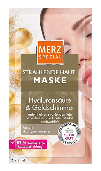 Merz Spezial Strahlende Haut Maske Gesichtsmaske Mit Goldschimmer Panthenol Vitamin E Hyaluronsaure Fur Einen Strahlend Frischen Teint 2 X 5 Ml Amazon De Beauty